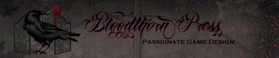 Welcome to Bloodthorn Press, an independent game publisher. Some people quibble over definitions but I consider these to be role-playing games or story telling games, if you prefer. They all involve people sitting around a table verbally creating a shared narrative.